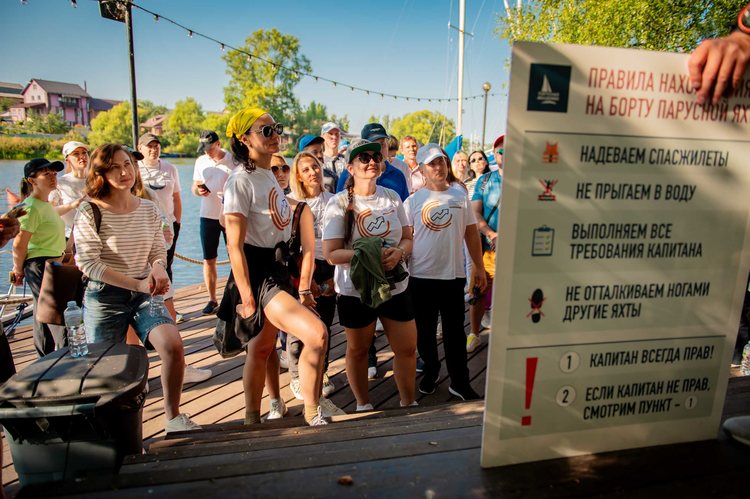 Мероприятие начинается на берегу. Профессиональные инструкторы Академии проводят краткий, но увлекательный курс: рассказывают, как устроена яхта, объясняют технику безопасности и распределяют роли в экипажах.